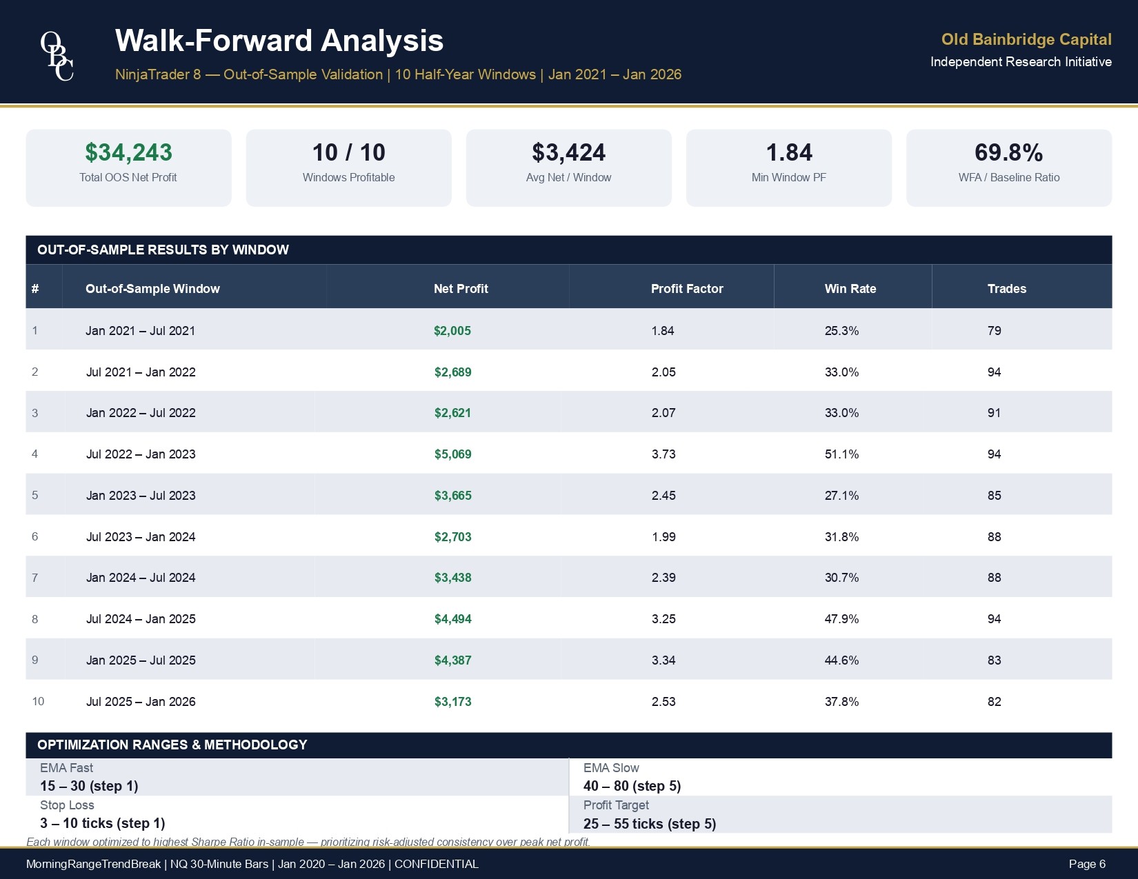 optimal parameters, and robustness across different market cycles