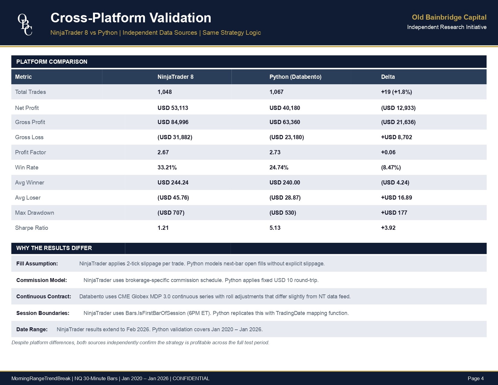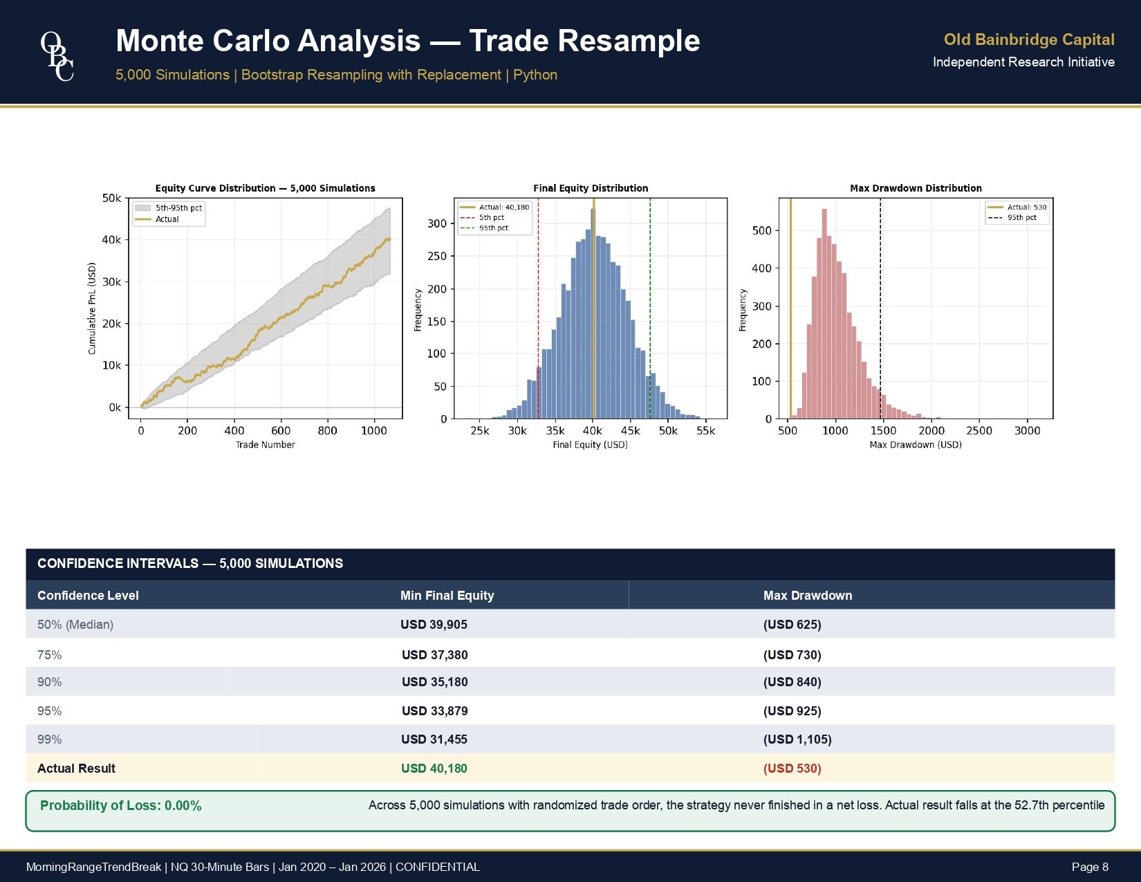We build and run the backtest against verified historical data. No shortcuts, no look-ahead bias, no curve-fitting. Full documentation throughout.