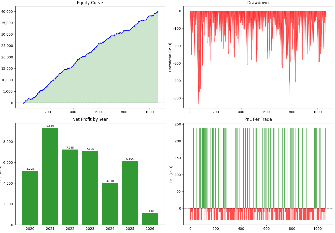 A complete written report delivered to you — equity curves, parameter analysis, statistical breakdown, and a clear conclusion. Balance due on delivery.
