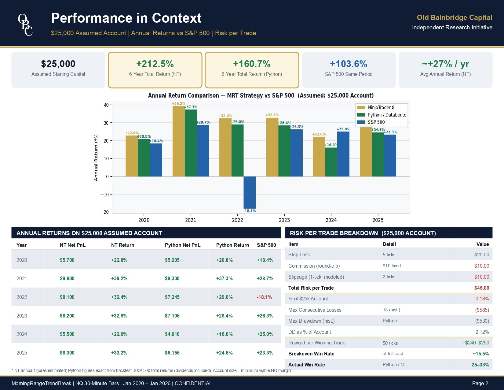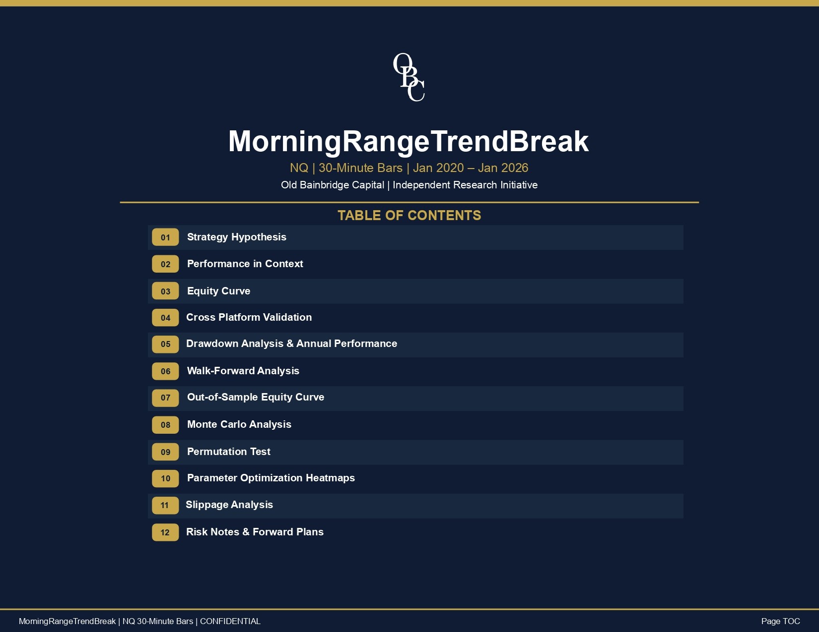 Research-grade report detailing your strategies historical performance,